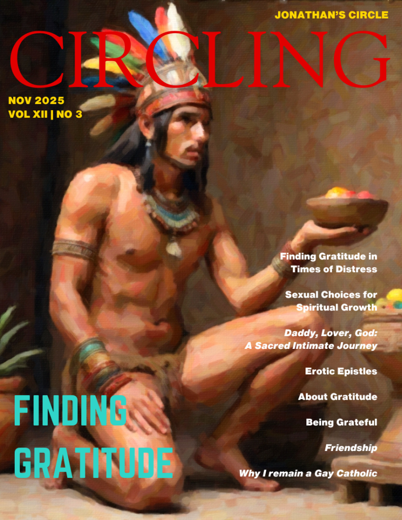 Our monthly emailed edition of CIRCLING Magazine contains everything our members need to foster and support your integration of Eros and Spirit. From thoughtful commentaries by Jon Carl Lewis, our Executive Director to monthly Jonathan’s Circle-sponsored online and virtual Events, Seminars, and Workshops, to columns touching on Poetry, Music, Film, Books, and Art, exciting photo spreads, and so much more, CIRCLING seeks to provide you with a broad spectrum of Erotic and Spiritual content for the contemporary man.